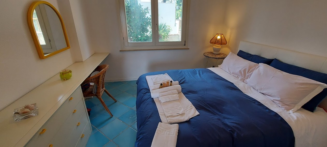 Villa Marianna si trova a Gaeta LT (Lazio) , è immersa nel verde in una zona molto silenziosa ma poco distante dal mare, all’incirca 5 minuti a piedi. La villa comprende un salone con cucina funzionale, un grande TERRAZZO con vista mare favolosa, una camera matrimoniale + un divano letto in soggiorno che all’occorrenza può essere letto singolo, 2 letti singoli o un letto matrimoniale (sarà nostra cura prepararlo in base alle esigenze dei nostri ospiti) per un totale di 4 posti letto. E’ dotata di Aria Condizionata, Wifi, POSTO AUTO privato.